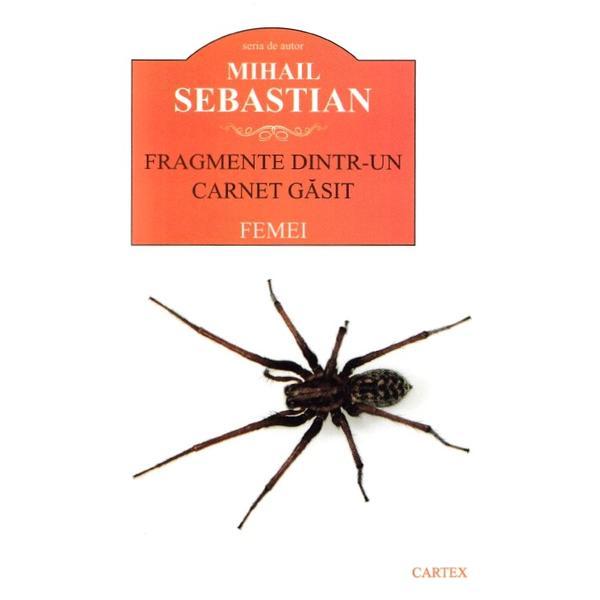 Fragmente dintr-un carnet gasit. Femei - Mihail Sebastian, editura Cartex: Debutul ca prozator al lui Mihail Sebastian cu Fragmente dintr-un carnet gasit (1932) nu iese din linia tematica a congenerilor sai, glosand aforistic pe marginea aventurii cunoasterii, a tragicului, a ratarii, a luciditatii in amor, a revoltelor spiritului si, in registru gidian, a degajarii plenare etc. Fragmentele..., de fapt o autofictiune camuflata diaristic dupa metoda de autenticizare larg utilizata de scriitorii secolului al XIX-lea, sunt toate „126 pagini - hartie comerciala - scrise marunt, regulat, fara stersaturi".