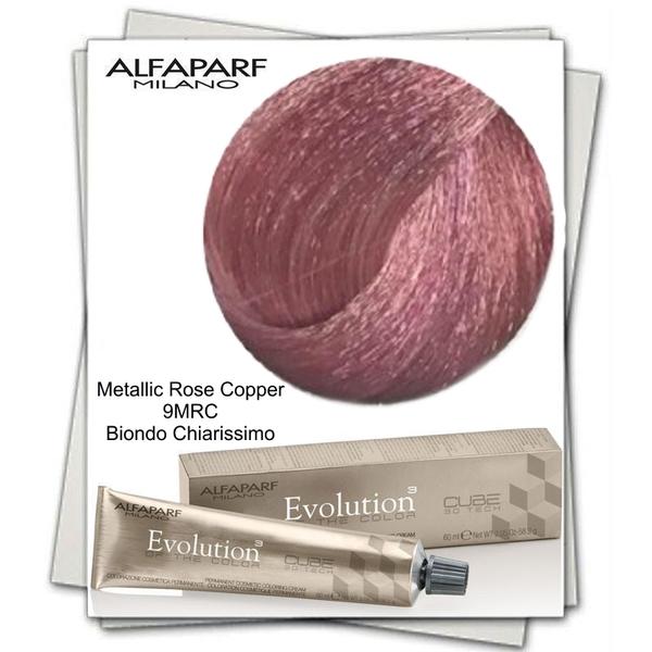 Vopsea Permanenta - Alfaparf Milano Evolution of the Color nuanta 9MRC Metallic Rose Copper Biondo Chiarissimo: Evolution of the Color3 este o vopsea permanenta ce garanteaza performante extraordinare in colorarea profesionala si îngrijire maxima a parului pe parcursul vopsirii, datorita Acidului Hialuronic ce creaza un invelis în jurul firului de par care permite o distributie uniforma a culorii si aderenta maxima pe par, ajutand la pastrarea nivelului optim de hidratare a parului.