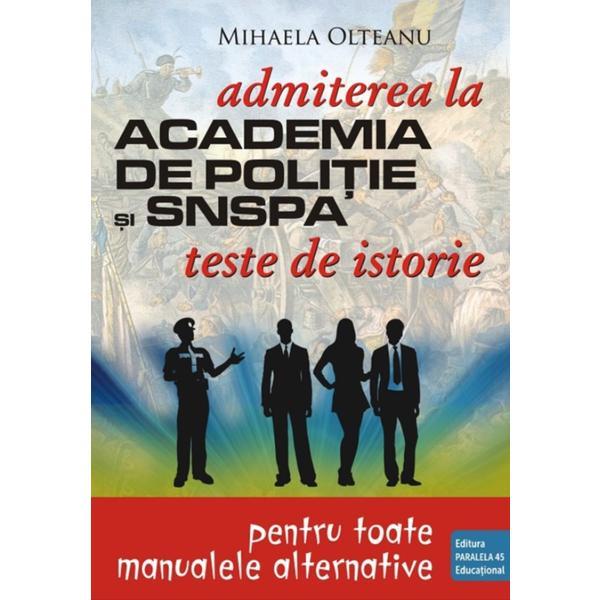 Teste de istorie pentru admiterea la Academia de politie si SNSPA - Mihaela Olteanu, editura Paralela 45: Cele 60 de teste de evaluare din aceasta culegere sunt minutios intocmite de autoare, care a avut in vedere toate cele sapte manuale de istorie a romanilor din bibliografia examenului de admitere la Academia de Politie si SNSPA.