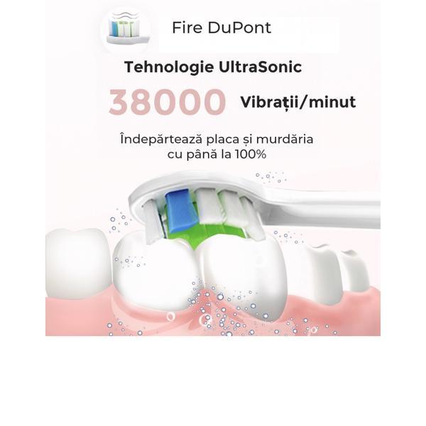 Curăţare – îndepărtează placa dentară datorită celor 38 000 de mişcări per minut