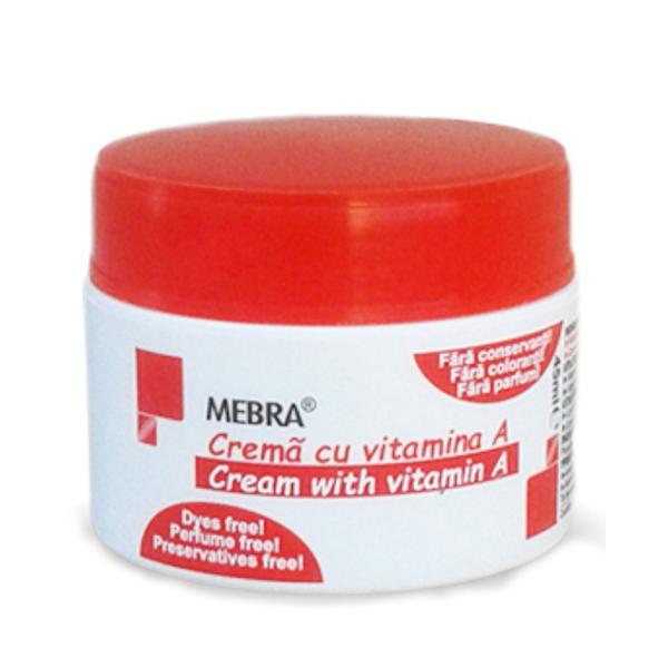 Crema cu Vitamina A Mebra, 45ml (Cutie): crema cu vitamina A, ce imbunatateste aspectul si textura pielii. Este ideala pentru intretinerea tegumentelor uscate. De asemenea, contribuie la o buna epitelizare si la mentinerea elasticitatii epidermei.
