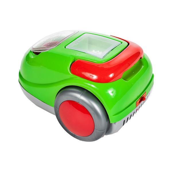 Aspiratorul are lumini, functioneaza cu baterii si imita functionarea unui aspirator adevarat.