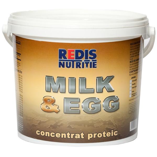 Concentrat Proteic Milk & Egg Redis, aroma de ciocolata, 900g: supliment alimentar cu un continut ridicat de proteine (85%), obtinute din lapte (zer 33.3%, caseinat 33.3%) si albus de ou, ce energizeaza organismul si ajuta la mentinerea sanatatii acestuia. Datorita compozitiei sale bogate in nutrienti valorosi, este recomandat sportivilor si persoanelor ce necesita o alimentatie proteica si energie (copii, batrani, celor ce depun munca fizica). Nu contine zahar.