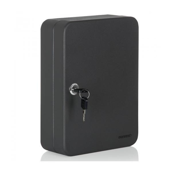 Cutia de chei cu mecanism de inchidere, din otel, are o forma rotunjita, 48 de agatatori si este potrivita pentru montarea pe perete. Usa poate fi incuiata.