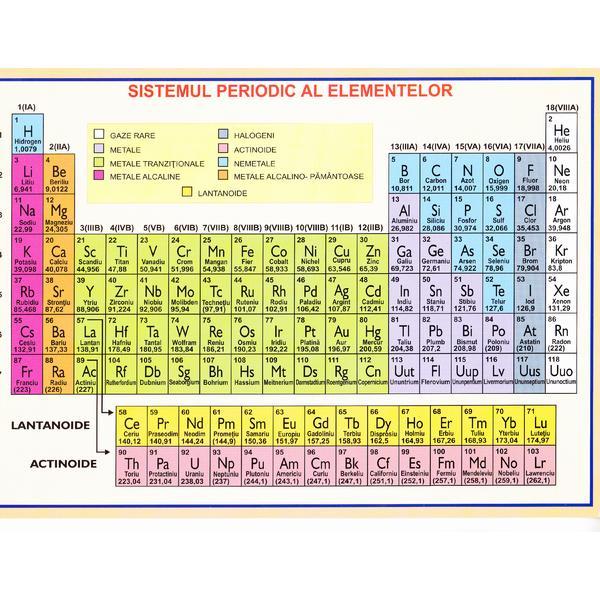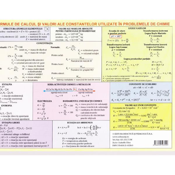 Sistemul periodic al elementelor, editura Didactica Si Pedagogica: Plansa A4 Fata verso– Sistemul periodic al elementelor – Formule de calcul si valori ale constantelor utilizate in probleme de chimie.