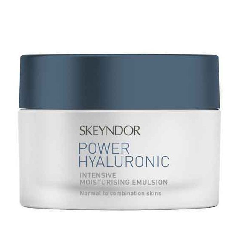 Crema Intens Hidratanta Ten Normal si Mixt - Skeyndor Power Hyaluronic Intensive Moisturising Emulsion 50 ml: crema ultra-hidratanta ce actioneaza in profunzime, echilibrand necesarul de umiditate al epidermei si prevenind riscul de pierdere a acesteia. Datorita concentratiei ridicate de acid hialuronic care actioneaza la nivel molecular, prin captarea si retentia de apa in piele confera un efect uimitor de intinerire si un ten cu un microrelief perfect hidratat si neted.