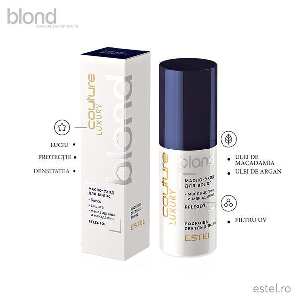 Uleiul-îngrijire hrăneÈ™te eficient È™i hidratează părul blond, umple cu luciu, menÈ›ine sănătatea È™i culoarea părului. Indiferent, dacă veÈ›i aranja părul cu feonul sau placa, sau veÈ›i merge la plimbare sub soarele arzător, părul tău va avea protecÈ›ie sigură, dar È™i luciu de lux È™i o fermitate sănătoasă.