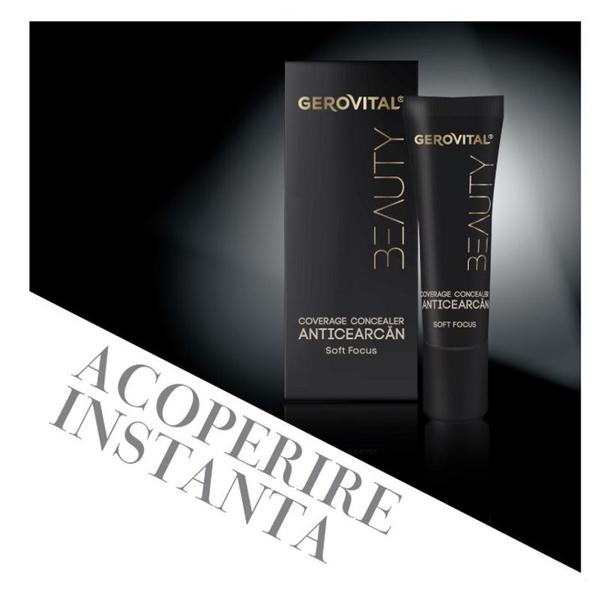 Anticearcan Gerovital Beauty, Soft Focus, 15 ml: anticearcan special ce se adapteaza pefect culorii tenului, mascand imperfectiunile pielii cearcane, pete, cosuri, fara a se strange in linii fine. Textura sa cremoasa asigura aplicare usoara si rezistenta indelungata.