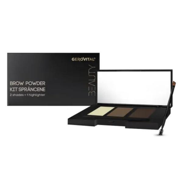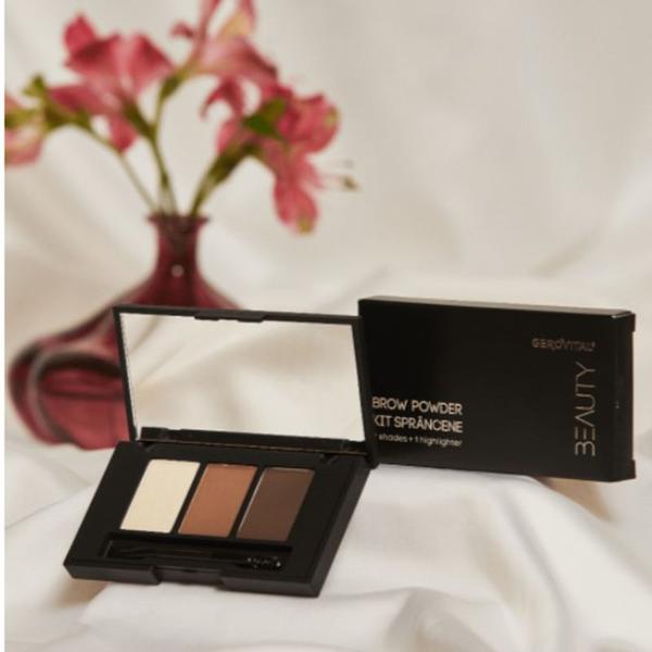 Kit pentru Sprancene - Gerovital Beauty Brown Powder, 4.9 g set complet de definire, conturare si stilizare a sprancenelor, creat pentru un aspect natural si armonios. Contine doua nuante de fard cu textura fina, usor de combinat intre ele pentru a obtine culoarea ideala, precum si un iluminator delicat, perfect pentru evidentierea arcadei sprancenei si pentru un plus de luminozitate. Setul include o pensula dubla: o perie spiralata pentru disciplinarea firelor si un aplicator unghiular pentru distribuirea precisa a fardului. Acest lucru permite realizarea unui machiaj rapid si precis, indiferent daca doriti un look natural sau unul bine definit. Kitul este prevazut si cu o oglinda integrata, fiind ideal pentru utilizarea zilnica, acasa sau in deplasare.