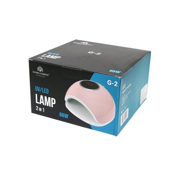 Global G-2 este o lampă de inaltă calitate și de generație nouă. Are o putere mare de 66 de wați. Perfect pentru diferitele tipuri de acoperire (geluri și vopsele cu gel). Lumina are un temporizator pentru 10, 30, 60, 99 secunde. Lumina are 33 de becuri LED. Cu o durată de viață de 50.000 de ore.