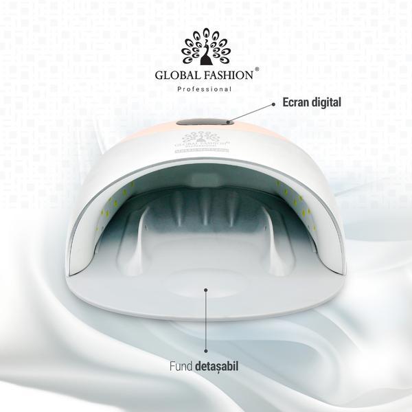 Lama de unghii led/uv 48W G-8 este fabricată din materiale de înaltă calitate: plastic de înaltă calitate, are o bază metalică cu oglindă pe magneți puternici, un ventilator aproape silențios în interiorul lămpii pentru răcirea clientului și pentru răcirea sistemului. Partea superioară a lămpii are un afișaj care arată raportul cronometrului și 4 butoane de control.