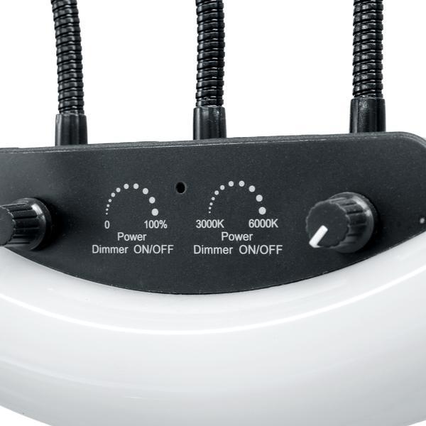 Lampă circulară cu trepied, LED MJ-14, USB, 3 suporturi pentru telefon, selfie