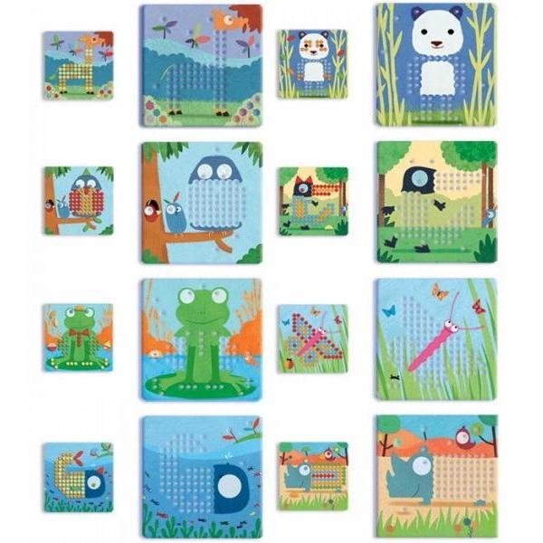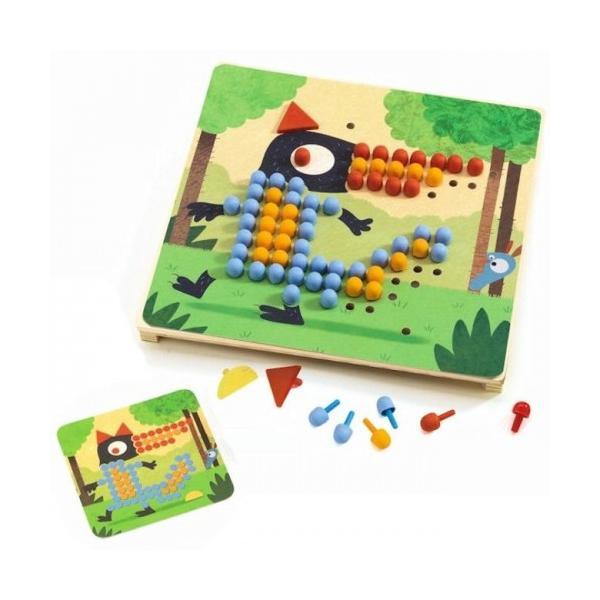 Contine: 230 de pioneze, 1 plansa din lemn perforata si 8 modele de creat. Dezvolta manualitatea, rabdarea si creativitatea.