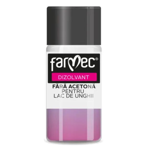 Dizolvant fara Acetona pentru Lac de Unghii - Farmec, 50 ml: dizolvant fara acetona pentru lacul de unghii, cu actiune rapida, ce curata eficient urmele de lac fara a deteriora sau usca suprafata unghiei. Formula blanda, imbogatita cu provitamina B5 si uleiuri vegetale, ofera o curatare delicata, neagresiva a unghiilor, mentinand nivelul de hidratare al acestora.