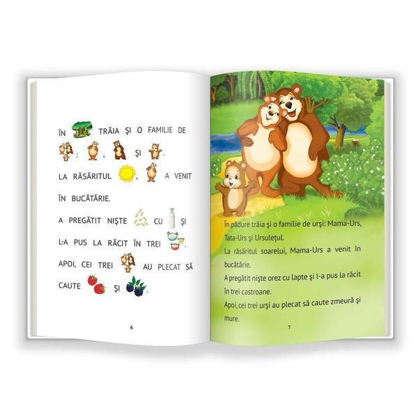 Fiecare fragment este prezentat în două variante: cu majuscule și imagini ajutătoare pentru cititorii care abia leagă literele în cuvânt, dar și cu litere mari și mici de tipar, pentru cei care vor să exerseze cititul cursiv.