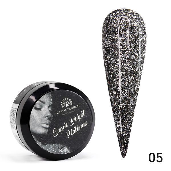 Vopseaua gel Super Bright este un produs inovator, care oferă un luciu strălucitor și de lungă durată. Este disponibilă într-o gamă largă de culori, inclusiv 05, o nuanță de platină foarte strălucitoare. Această culoare deosebită poate fi folosită într-o varietate de designuri de unghii, de la simple la complexe.