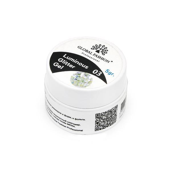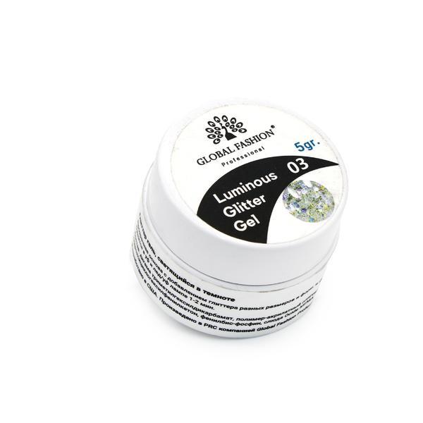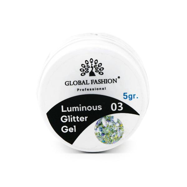 Gelul luminiscent de la Global Fashion Luminous Glitter Gel este un gel decorativ cu particule de sclipici hexagon cu o stralucire holografica. Efectul cel mai spectaculos iese in evidenta in intuneric. La lumina zilei, acest gel este transparent cu particule de sclipici hexagon, iar la lumina de noapte obtine o tenta luminoasa verde.