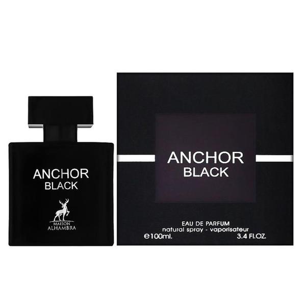 Apa de Parfum pentru Barbati - Maison Alhambra EDP Anchor Black, 100 ml: Anchor Black este un parfum arabesc destinat barbatilor, care se remarca printr-o prezentare unica intr-o sticluta eleganta de 100 ml cu pulverizator. Lansat in 2022, acest parfum emana rafinament prin compozitia sa deosebita, incadrata in categoria Aromatic Condimentat. Conceput special pentru a lasa o impresie de durata, Anchor Black combina note olfactive intense si sofisticate, facandu-l ideal pentru barbatii care doresc sa se distinga printr-o aroma puternica si memorabila.