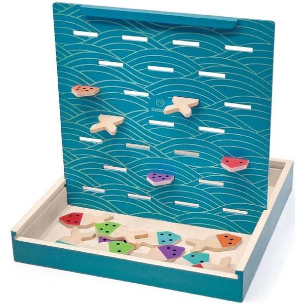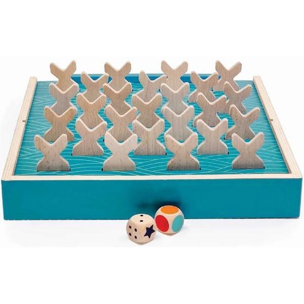 Un joc de societate creativ cu 25 de pesti colorati din lemn si o cutie din lemn care poate fi jucat in mai multe versiuni, pentru a-ti exersa abilitatile de memorie, observare, concentrare! Se joaca pe suprafata superioara a cutiei, pe suprafata inferioara, pe plansele jucatorilor sau prin plasarea capacului pe verticala in cutie, oferind in acest fel infinite variante de joc: