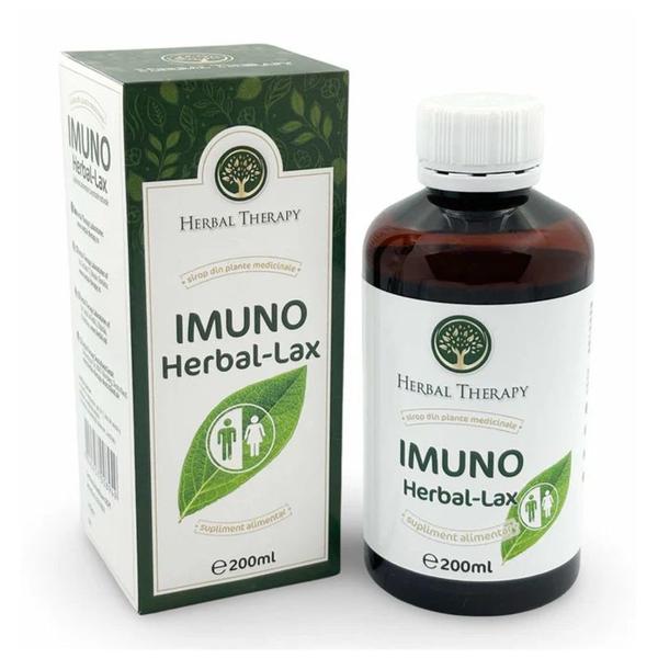 Sirop Laxativ Imuno Herbal-Lax - Herbal Therapy Laboratories, 200 ml: supliment alimentar natural pe baza de plante, destinat sustinerii digestiei si mentinerii unui tranzit intestinal regulat. Formula cu extracte din senna, crusin, papadie si ghimbir contribuie la functionarea normala a sistemului digestiv si la eliminarea disconfortului abdominal. Siropul este potrivit in perioadele de digestie lenta balonare sau constipatie si poate sprijini detoxifierea si sanatatea generala a sistemului gastrointestinal.