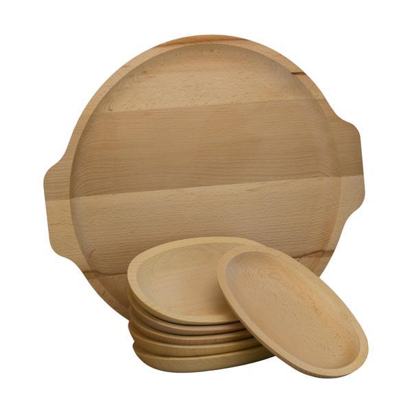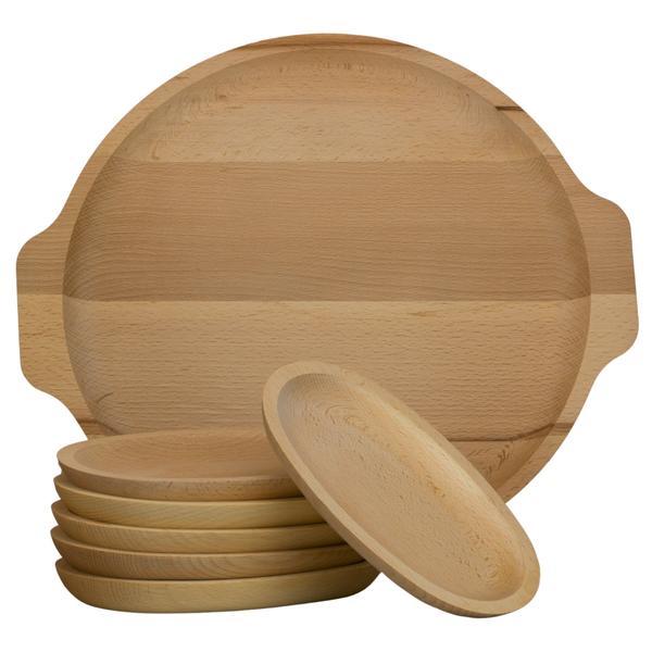Set platou de servire in forma rotunda cu maner si 6 farfurii ovale, care nu trebuie sa lipseasca de pe masa festiva.