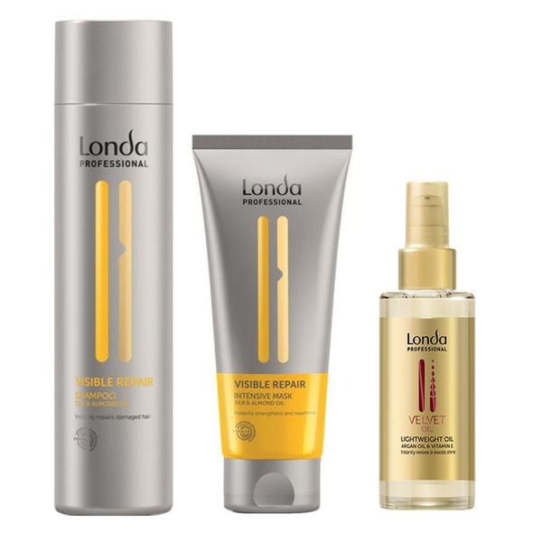Pachet Reparator - Londa Professional Visible Repair: Sampon 250 ml, Masca 200 ml, Ulei de Argan 30 ml: