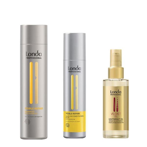 Pachet Reparator - Londa Professional Visible Repair: Sampon 250 ml, Balsam Leave-In 250 ml, Ulei Argan 30 ml: