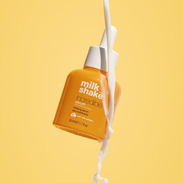 Ser Fortifiant pentru Scalp - MilkShake Incredible Serum, 50 ml: ser usor, cu absorbtie rapida, creat pentru a imbunatati sanatatea scalpului si pentru a intari parul de la radacina. Formula sa inovatoare, imbogatita cu proteine din lapte, extracte de fructe, acid hialuronic si cofeina, ofera hidratare intensa, hraneste si stimuleaza firele de par, lasandu-le mai rezistetne, matasoase si pline de vitalitate. Cu textura sa usoara si non-grasa, serul patrunde rapid, fara a lasa reziduri, fiind ideal pentru utilizarea zilnica sau inainte de coafare.