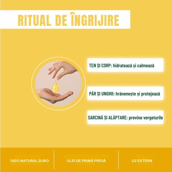 Mod de utilizare: aplicati o cantitate potrivita pe pielea curata si usor umeda. Masati delicat pana la absorbtia completa. Poate fi folosit ca atare sau ca baza pentru amestecuri cu uleiuri esentiale. Recomandat pentu masaj, demachiere naturala sau ingrijirea zonelor delicate (fata, corp, par).