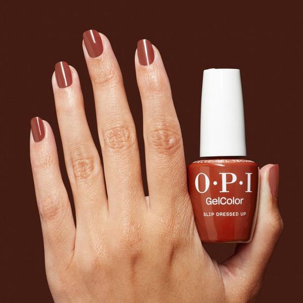 Lac de Unghii Semipermanent Hema-Free - OPI Gel Color, Mani-tude Collection, nuanta Slip Dressed Up, 15 ml: colectia OPI Mani-tude OPI readuce in atentie vibe-ul anilor ’90, reinterpretat intr-o nota moderna, printr-un mix de nuante indraznete, jucause si sofisticate. De la tonuri retro reinventate, pana la nuante intense si surprinzatoare, colectia OPI Mani-tude iti ofera libertatea de a-ti exprima personalitatea si atitudinea prin manichiura. Oja semipermanenta OPI Gel Color detine tehnologia OPI Intelli-Gel ce asigura o acoperire intens pigmentata si o rezistenta indelungata. Sistemul OPI GelColor Intelli-Gel™ ofera o aplicare perfecta a lacului de unghii, se auto-corecteaza la fiecare aplicare si ramane fixat pe unghie, iar formula vegana cu pigmenti intensi de culoare asigura pana la 3 saptamani de purtare profesionala.