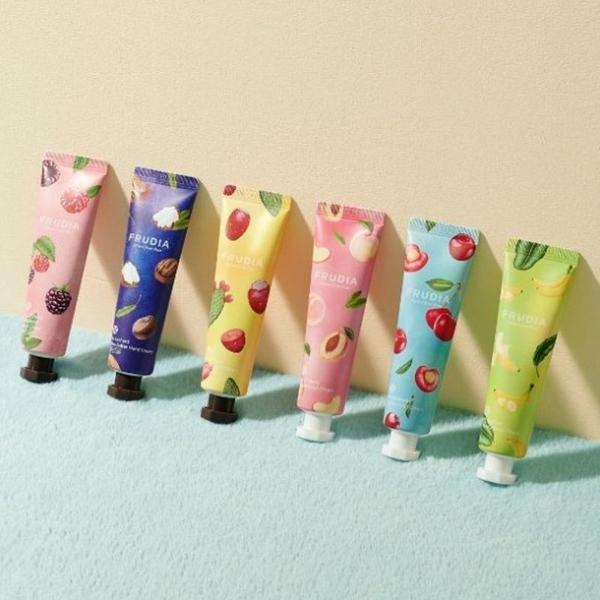 Crema de Maini Hidratanta cu Piersici - Frudia My Orchard Peach Hand Cream, 30 g: hidrateaza intens si protejeaza pielea uscata, oferind o senzatie imediata de catifelare. Formula sa contine extract de piersica si ingrediente nutritive precum unt de shea si panthenol, care refac bariera naturala a pielii si previn uscarea. Textura usoara se absoarbe rapid, fara a lasa urme grase, iar parfumul delicat de piersici confera mainilor prospetime si un miros placut care persista intreaga zi.