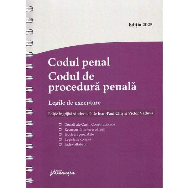 Codul penal. Codul de procedura penala. Legile de executare Act.3 septembrie 2025 Ed.Spiralata - Ioan-Paul Chis, Victor Vaduva, editura Hamangiu: