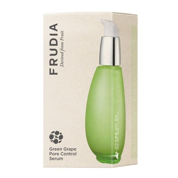 Ser pentru Controlul Porilor cu Struguri Verzi - Frudia Green Grape Pore Control Serum, 50 g: serul de fata cu struguri verzi este conceput pentru a reduce vizibil porii dilatati si a regla excesul de sebum, lasand tenul echilibrat, neted si mat. Formula contine 80% extract de struguri verzi, bogat in antioxidanti si taninuri, care contribuie la purificarea pielii, reducerea luciului si ofera un efect racoritor placut, fara senzatie lipicioasa. Textura lejera se absoarbe rapid si poate fi utilizata dimineata sau seara, sub crema obisnuita. Imbogatit cu ulei de caise, ulei de samburi de grapefruit si ulei de seminte de mango, serul ofera o hidratare profunda si de durata, intarind bariera naturala a pielii si protejand-o de factorii externi nocivi. Potrivit pentru tenul gras si mixt, dar si pentru pielea deshidratata, acest ser asigura o hidratare intensa, conferind pielii un aspect suplu, luminos si sanatos. Testat dermatologic, este sigur pentru toate tipurile de ten.