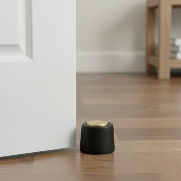 Opritorul pentru usa este un accesoriu care adauga stil si va protejeaza usa si peretele de deteriorare, prevenind zgarieturile inestetice. Acest opritor rotund se potriveste perfect in orice incapere datorita finisajului elegant din alama satinata si negru mat.
