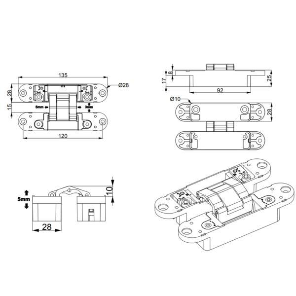 Aceasta balama reprezinta solutia perfecta pentru a adauga eleganta si practicitate usilor tale. Datorita designului ingenios, se integreaza discret in interiorul usii si devine invizibila atunci cand aceasta este inchisa. Aspectul sau minimalist adauga o nota de eleganta si ordine in orice spatiu, fara a compromite functionalitatea. Un alt aspect deosebit al balamalei este unghiul sau de deschidere de 180 de grade, care ii ofera o mare flexibilitate in utilizare.