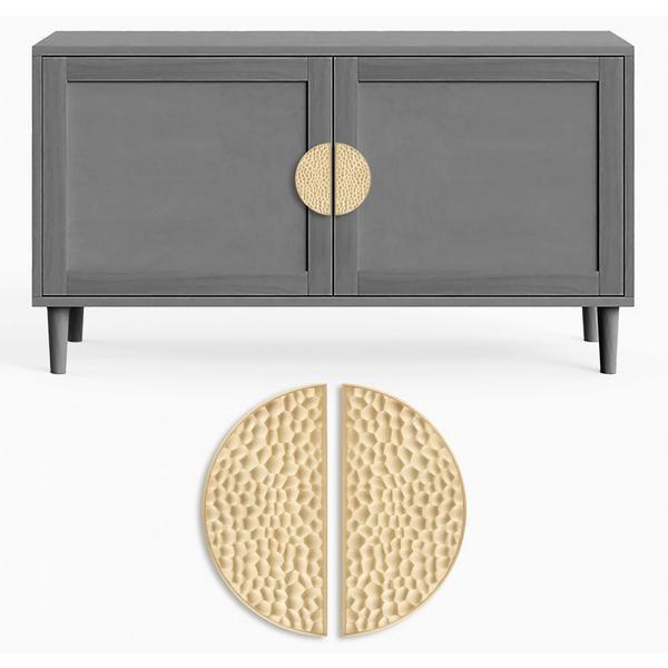 Acest maner este compus dintr-un finisaj de alama mata si are lungimea de 99.9 mm. Combinand doua manere semicirculare de mobila pe fronturile adiacente, vom obtine un element decorativ eficient în forma de cerc.