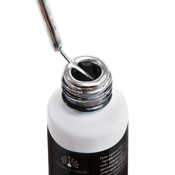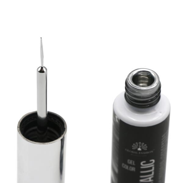 Vopsea gel cu pensulă fină METALLIC GEL, efect de oglindă, Global Fashion, SILVER, 10 ml