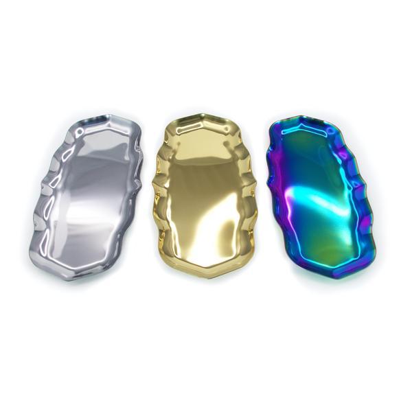 Această tavă metalică cu finisaj cameleon are un design oval elegant și este ideală pentru utilizarea în saloane sau acasă.