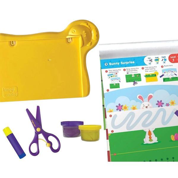 Include o foarfeca pentru copii cu varfuri rotunjite pentru taieri usoare si sigure, o placa de impaturit care ii ajuta pe cei mici sa plieze corect si precis, precum si un tub de lipici pentru activitati curate si fara murdarie.