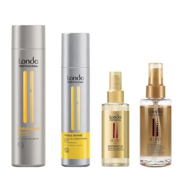 Pachet Reparator - Londa Professional Visible Repair: Sampon 250 ml, Balsam Leave-In 250 ml, Ulei de Argan 30 ml + Ulei de Argan 100 ml: