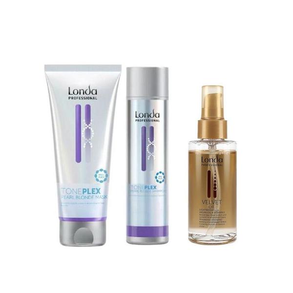 Pachet Nuantator Blond Perlat - Londa Professional Toneplex Pearl Blonde: Sampon 250 ml + Masca 200 ml + Ulei de Argan 100 ml