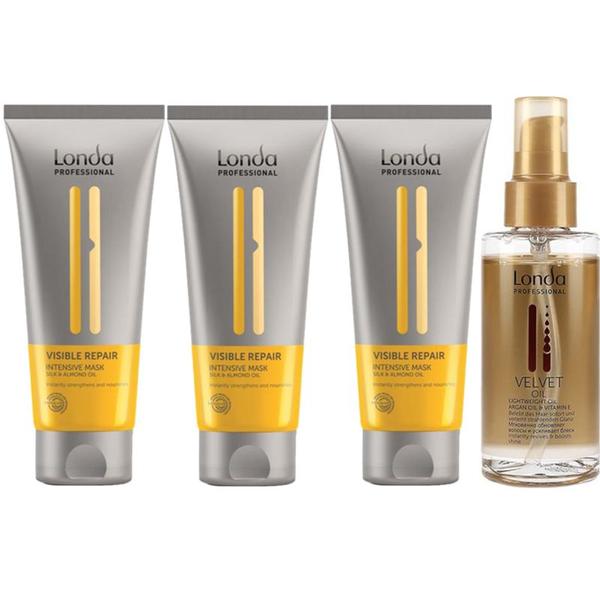 Pachet 3 x Masca Intensiva Reparatoare - Londa Professional Visible Repair Intensive Mask 200 ml + Ulei Argan 100 ml: