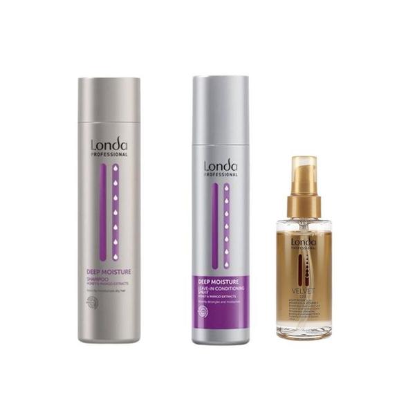 Pachet Intens Hidratant - Londa Professional Deep Moisture: Sampon 250 ml, Balsam Leave-In 250 ml + Ulei de Argan: