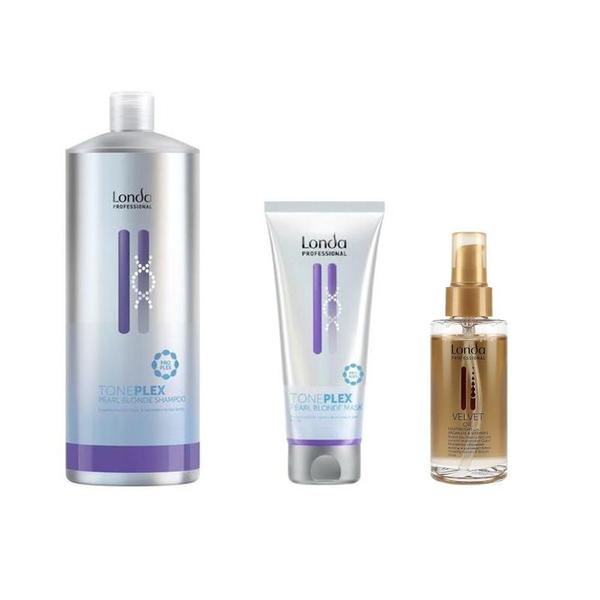 Pachet Nuantator Blond Perlat - Londa Professional Toneplex Pearl Blonde: Sampon 1000 ml, Masca 200 ml + Ulei de Argan 100 ml: