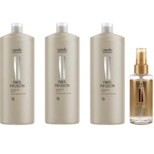 Pachet 3 x Sampon cu Keratina - Londa Professional Fiber Infusion Keratin Shampoo, 1000 ml + Ulei Argan, 100 ml:
