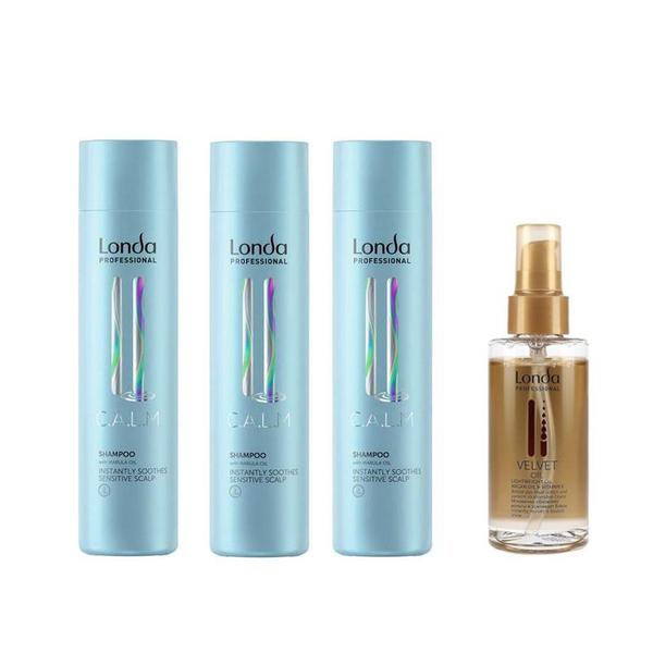 Pachet 3 x Sampon Calmant pentru Scalp Sensibil - Londa Professional C.A.L.M Shampoo Instantly Soothes Sensitive Scalp, 250 ml + Ulei de Argan 100 ml: