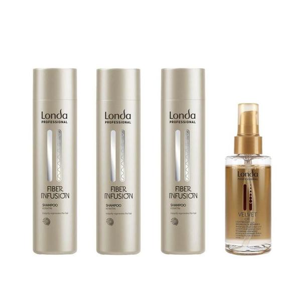 Pachet 3 x Sampon cu Keratina - Londa Professional Fiber Infusion Keratin Shampoo, 250 ml + Ulei de Argan 100 ml: