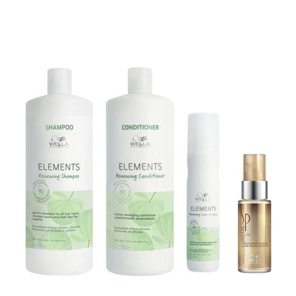 Pachet pentru Toate Tipurile de Par - Wella Professionals Elements Renewing: Sampon 1000 ml, Balsam 1000 ml, Spray Leave-In 150 ml + Ulei Reconstructiv 30 ml: