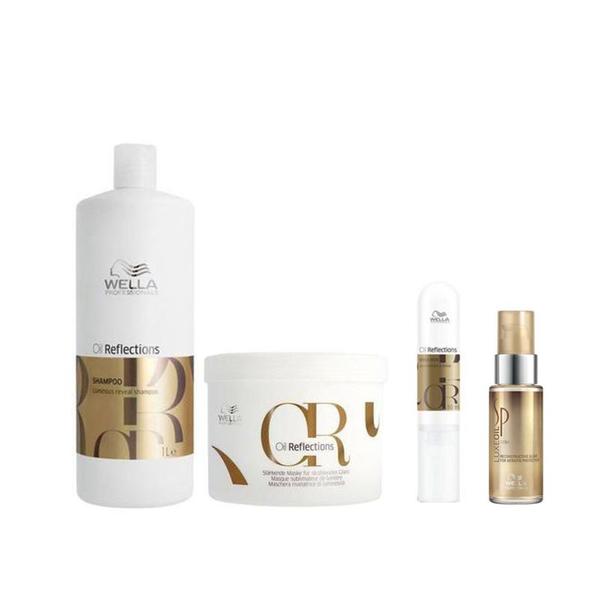 Pachet pentru Par Neted si Stralucitor - Wella Professionals Oil Reflections Luminous Reveal - Sampon 1000 ml, Masca 500 ml, Emulsie 50 ml + Ulei Reconstructiv 30 ml: