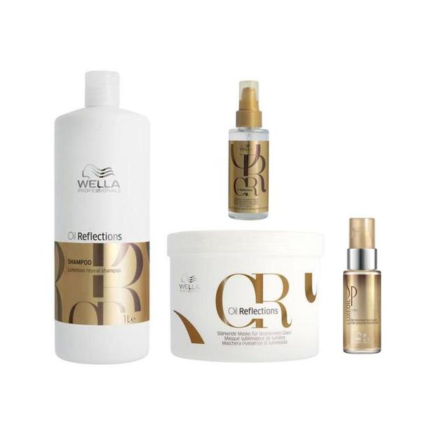 Pachet pentru Par Neted si Stralucitor - Wella Professionals Oil Reflections - Sampon 1000 ml, Masca 500 ml, Ulei Stralucire 100 ml + Ulei Reconstructiv 30 ml: